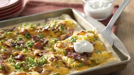 Bake 15 to 17 minutes or until crust is golden brown and cheese is melted. Cut into wedges to serve.