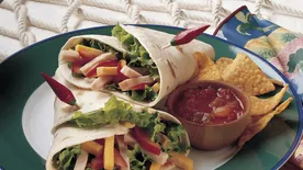 Top each tortilla evenly with turkey and lettuce; roll up. If desired, secure with toothpicks. Serve wraps with dressing for dipping. Remove toothpicks before serving.