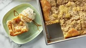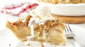 An easy, pat-in-pan crust holds a tender apple filling sprinkled with a sweet crumb topping.