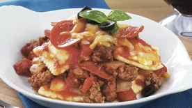 • 3 packages (9 oz each) refrigerated spicy beef- and sausage-filled ravioli