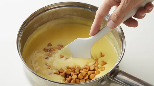 In 4-quart saucepan, cook milk and pudding mix over medium heat 10 to 14 minutes or until mixture comes to a full boil, stirring constantly. Remove from heat. Add butterscotch chips; stir until melted and smooth. Let stand 5 minutes.