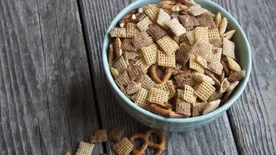 Want to make a toastier version of this go-to party snack? Preheat your oven to 250°F. Mix the cereals, nuts, pretzels and bagel chips in a large bowl until well combined, then set aside. Melt the butter in a large roasting pan in the oven. Stir in the seasonings, then gradually stir in the cereal mixture until evenly coated. Bake for 1 hour, stirring every 15 minutes. Spread on paper towels, let cool about 15 minutes. Store in airtight container.