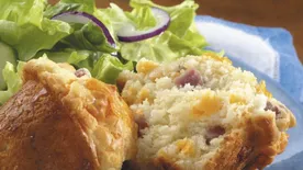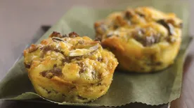 Enjoy breakfast with these sausage and cheese muffins made using Original Bisquick® mix.