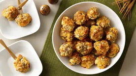 For Dressed-Up Sausage Ball Muffins, add 1/3 cup finely chopped onion, 3 teaspoons garlic powder and 1/4 teaspoon red pepper sauce to dough.