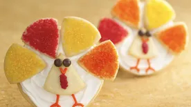 To make tassels: Cut sixty 2 1/2-inch lengths from fruit snack rolls. Cut each into several strips up to 1/2 inch from 1 end. Roll uncut end between fingertips to make tassels. Or cut several pieces of shoestring licorice into 2 1/2-inch lengths.