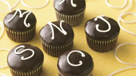 Instead of sprinkling with chocolate chips, drizzle with melted chocolate. In small microwavable bowl, microwave 1/4 cup miniature semisweet chocolate chips and 1/2 teaspoon shortening uncovered on High just until mixture can be stirred smooth. Place in small food-storage plastic bag; cut off small corner of bag. Drizzle over frosted cupcakes.