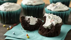 A pocket of frosting inside chocolate cupcakes makes an indulgent and delicious surprise.