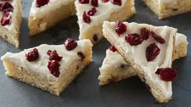 If you're looking for a classic (and pretty!) flavor combination, try our Oatmeal Cranberry White Chocolate Cookie Bars. This soft oatmeal cookie bar is made with Betty Crocker™ oatmeal cookie mix while sweet and creamy white chocolate is drizzled on top, and sweet, tart and slightly chewy dried cranberries and more white chocolate are stirred into the dough. Quick and fun, this cranberry-oatmeal cookie bar recipe will add extra flavor to your cookie tray.