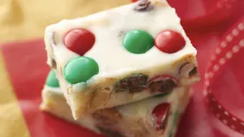 Fudge-making can be fussy—good thing you're a hostess with a hack. By using Betty Crocker™ Rich & Creamy Vanilla Frosting, there’s no need for a candy thermometer or constant stirring over the stove. All it takes to make this eye-catching Christmas swirl fudge is a can of our favorite frosting, a few cups of white chocolate baking chips and bright red and green gel colors. With just 10 minutes of prep, some cooling time in your fridge and three ingredients, this sweet-as-can-be recipe will deliver holiday fun. It's the easiest (and tastiest!) way to spread joy during the hectic holiday season.