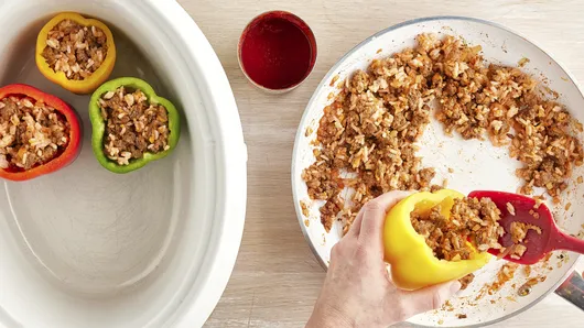 If this is your first time trying your hand at this recipe, let Betty walk you through the process in this handy article about how to make stuffed peppers in the slow cooker. Looking for more ways to make these veggies into dinner? Explore the rest of our bell pepper recipes.