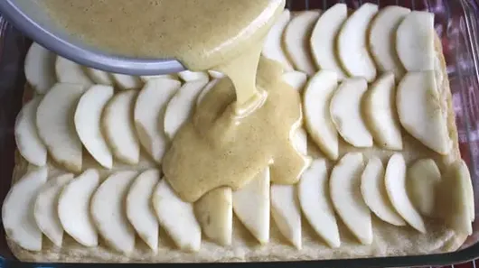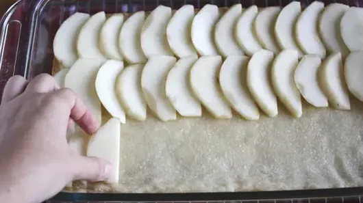 While butter is cooling, place sliced pears in single layer over cooled cookie crust.