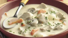 About 20 minutes before serving, stir in frozen peas. Cover; cook on Low heat setting about 20 minutes longer or until peas are tender.