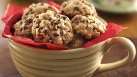 • Oatmeal chocolate chip cookies are one of the most popular culinary variations of the classic chocolate chip cookie. This from-scratch recipe includes whole-grain oats and semisweet chocolate chips for a two-in-one taste treat. When family and friends get a taste of the gooey chocolate and oats in this cookie, it’s sure to be an instant hit—so be prepared to make this recipe again and again. Now that you’ve got a box of oats and a bag of chocolate chips in the pantry, you might be ready explore some variations on this irresistible combination. Check out Betty’s best oatmeal chocolate chip cookies to find creative new twists and time-tested heirloom favorites.