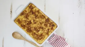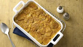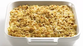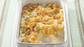 Print, save or memorize this easy, cheesy recipe! It only takes 10 minutes of prep to whip up this casserole for 12, so you’ve always got a crowd-pleasing side to take to potlucks or serve at holiday feasts.