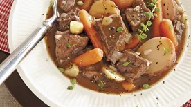Beef and mushrooms swimming in a rich broth make a warming meal on cool days.