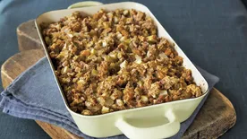 Substitute 6 peaches, halved, pitted and peeled, for the apples. Substitute 1/4 cup cranberry relish for the raisins and chopped nuts.