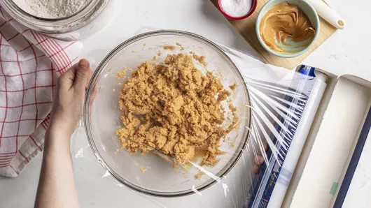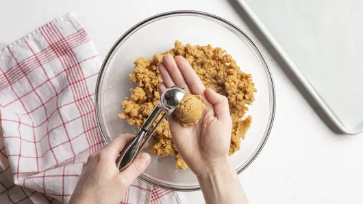 Storing and Chilling the Dough: Your cookie dough needs to be chilled for at least 2 hours or until firm before baking to ensure you get the best peanut butter cookies possible. Once you’ve assembled your dough, cover it tightly with plastic wrap and refrigerate for up to 24 hours. If the dough is too firm to scoop after refrigerating, let it stand at room temperature for about 30 minutes. This is a great way to save time on prep if you’ll be in a rush the day of serving.