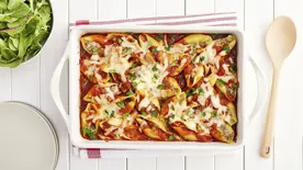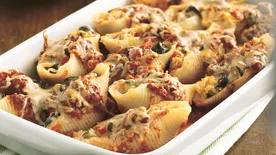 A make-ahead version of an Italian classic, these cooked pasta shells are stuffed with hearty beef, ricotta and mozzarella. Make a double batch and keep one in the freezer for a handy potluck dish.
