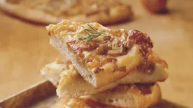 Enjoy this Italian flatbread recipe baked using Italian pizza crust, onions, cheese and almonds – ready in just 25 minutes!