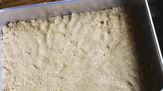In medium bowl, stir together crust ingredients until dough forms. Press in pan. Bake 15 minutes.