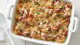 Heat oven to 375°F. Line 13x9-inch (3-quart) glass baking dish with foil. Spray with cooking spray.