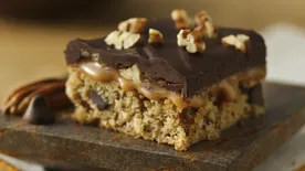 Bake 20 to 25 minutes or until edges are light golden brown. Cool completely, about 1 hour 30 minutes. Sprinkle top of bars with powdered sugar through fine mesh strainer. Cut into 6 rows by 6 rows. Store covered in refrigerator.