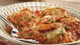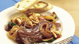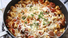 Two types of meat pair well with tortellini, cheese, marinara sauce and mushrooms. Buon appetito!