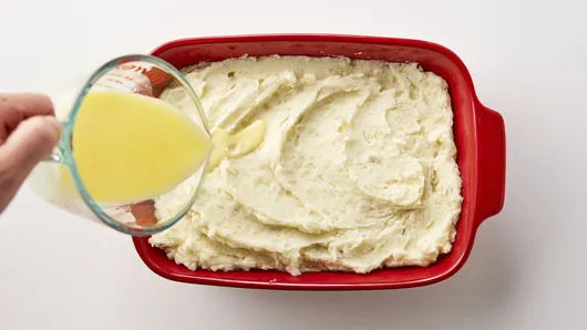 Quintessential to almost all holiday meals, but most famously eaten on Turkey day, Thanksgiving mashed potatoes are the one side that’s truly adored by everyone. That's why we're showing you how to make mashed potatoes ahead of time, with nothing more than a few pounds of spuds, milk, butter, cream, salt and pepper. Make-ahead mashed potatoes can be prepped in just 25 minutes, and you can even make them the night before, so come dinnertime you can stress a little less knowing all you have to do is pop your prepped casserole dish in the oven.
