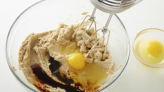 Another key to successful baking is adding ingredients in the order they are called for. This recipe uses the creaming method for cookie making. Creaming—mixing the butter, shortening and sugar, before adding eggs and dry ingredients—creates tiny air bubbles in the butter mixture so it becomes fluffy and lighter in color. Taking this step makes it easier to integrate the other ingredients and create a dough with the right consistency, and ultimately, a cookie with a nice texture and shape.