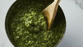 Ready in 45 minutes, this savory meatball dish is made with ground turkey and creamy basil pesto sauce. They're great over pasta or in a meatball sub.
