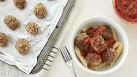 These meatballs are delicious over pasta, but also make a great meatball sub, or cut them into pieces as a pizza topping.