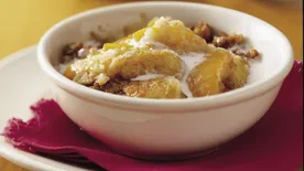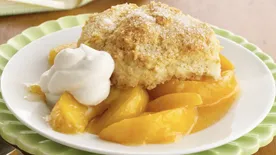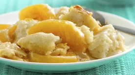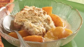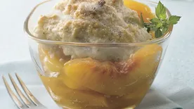Grab a carton of pecan praline or cinnamon ice cream for topping your warm peach cobbler.