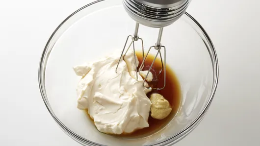 Beating the cheese mixture is the key technique in this recipe, and as we noted above, it’s hard to beat it for too long. To make this less labor intensive, use an electric hand mixer or a stand mixer. Just remember when it’s time to stir in the solid ingredients added at the end of the recipe, it’s best to do this by hand.