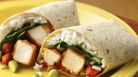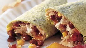 Mango and pineapple slices pair nicely with these Southwest chicken wraps.