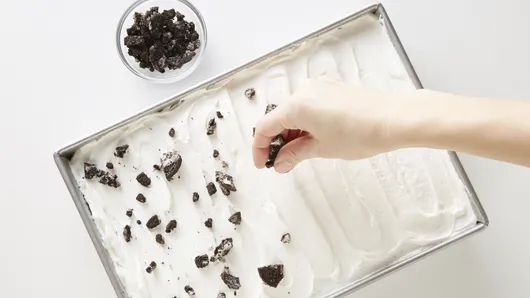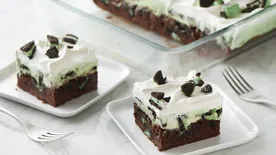 This Oreo dessert is cool, decadent and guaranteed to get chocolate lovers raving. A fudgy brownie layer is topped with a whipped cream cheese layer, crushed Oreo cookies, chocolate pudding and more whipped topping — it'll be your new potluck go-to in no time.