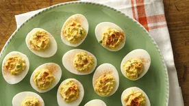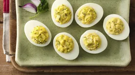 Our easy deviled eggs are as fun to eat as they are to make, so this one’s usually the first empty plate at the party. Set it out on the table with an array of yummy, family-friendly toppings, like finely chopped veggies, bacon bits, extra seasonings, and fresh herbs. The flavor opportunities are endless! Here’s how to make deviled eggs from start to finish.