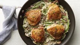 You'll get thumbs up around the dinner table when you serve these chicken thighs smothered with sautéed mushrooms served with time-saving instant mashed potatoes.