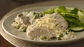 Meanwhile, make potatoes as directed on box, using water, milk butter and salt. Serve chicken and mushrooms with mashed potatoes.