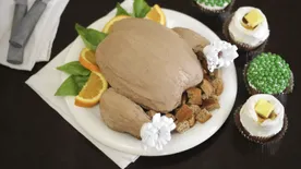 On each of 2 large serving trays, arrange 12 cupcakes as shown in diagram. (See link below for diagram.) Frost shell of one turtle with chocolate frosting. Frost head and feet with green frosting. (Push cupcakes together slightly to frost entire turtle, not just individual cupcakes.) Pipe green frosting on chocolate shell to create turtle design. Add 2 candies for eyes; add pupils using chocolate frosting. Add nostrils with chocolate frosting or miniature chocolate candies. Add red string licorice for mouth (trimming to fit) and green licorice for tail.