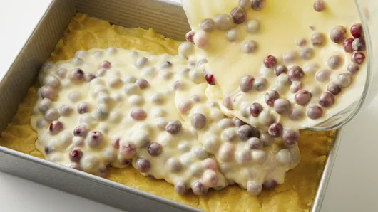With their sweet-and-tart flavor and ooey-and-gooey texture, these bars are easy to love and easy to make. To pull together a pan, you’ll only need 15 minutes of hands-on time, which makes them perfect for any holiday get-together (especially the ones that sneak up on you). And since they’re baked in a sturdy 13x9 pan, they’re easy to tote along. Keep a box of Betty Crocker™ Super Moist™ yellow cake mix—the secret shortcut ingredient in this recipe—on hand and you’ll be able to pull off these cranberry-studded and powdered sugar-sprinkled bars whenever you need an easy and crowd-pleasing dessert.