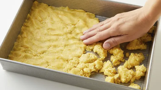 In large bowl, stir Cake Base ingredients until well blended. Press evenly in pan.