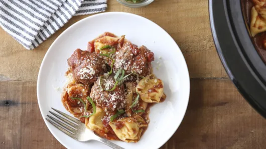 This slow-cooker meatball and tortellini dish is just the thing for busy weeknights. Prep it earlier in the day.