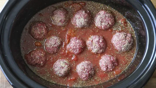 Cover and cook on High heat setting 3 hours or on Low heat setting 6 hours or until meatballs are completely cooked through.