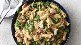 You asked for it, and the Betty Crocker Kitchens are delivering! Now you can make one of our most popular Instant Pot™ recipes, Creamy Tuscan Chicken Pasta, in the slow cooker. This creamy, flavor-rich pasta dish made with campanelle pasta, chicken, spinach and sun-dried tomatoes is incredibly easy but feels extra special. It’s as perfect for company as it is for a family night in.