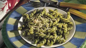 Pesto adds a burst of fresh flavor to many dishes, transforming a familiar food into something different and new. A little goes a long way, so start off with a small amount, adding more if you like: • Cooked vegetables: Toss with hot cooked vegetables instead of using butter. • Corn on the Cob: Spread on hot, cooked corn on the cob instead of using butter and salt. • Dip or Spread: Serve with appetizers as a dip or as a spread for bread, crackers, or cut-up raw vegetables. • Mashed Potatoes: Stir into hot mashed potatoes. • Meat or Fish: Brush on chicken, pork, beef, shrimp, scallops or fish during cooking or top cooked meat or fish after cooking. • Pasta, Rice or Couscous: Toss with hot cooked pasta, rice or couscous. • Pasta Salads: Replace a little of the mayonnaise or dressing with pesto in pasta salads. • Spread on crust instead of using traditional pizza sauce or add dollops to baked pizza as a topping. • Sandwich spread: Use instead of mayonnaise or mustard in sandwiches or in addition to your typical spread. • Sauces: Stir into cream sauce or cheese sauce for serving on chicken, pork or pasta. • Scrambled Eggs: Add a spoonful to eggs while beating. • Soups: Stir into soups such as potato, tomato or corn chowder, or serve soup with a dollop of pesto on top.