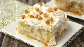 This dessert recipe for moist, tender apple cake begins with Betty Crocker® cinnamon streusel muffin mix and ends with caramel topping and crunchy pecans!