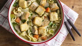 Busy weeknights are no match for Betty’s easy Tortellini Soup recipe. It's brimming with chopped chicken, fresh vegetables and classic Italian flavors—what could be more satisfying? The small cheese-stuffed tortellini add a heartiness to this dish and give it a cozy feel. But what we love most about our chicken tortellini soup is how quickly it comes together: it goes from stove to table in 45 minutes, so you can serve a deliciously warm family meal without a ton of prep.