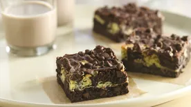Bake 20 to 25 minutes or until cookie portion is golden brown and brownie looks set on top. Cool in pan 5 minutes; remove to cooling rack. Cool completely, about 1 hour.
