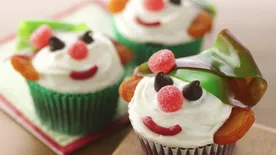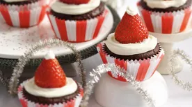 Add a little holiday cheer to each cupcake with a holly sprig. Make two holly leaves by splitting one green spearmint leaf candy in half horizontally and add 3 red cinnamon candies for berries. Or top frosted cupcakes with a snowy drift of flaked coconut.