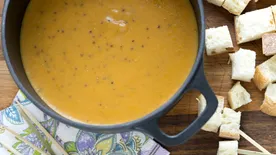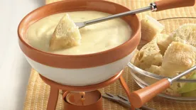Spear bread cubes with fondue forks; dip into fondue. (If fondue becomes too thick, stir in a small amount of dry white wine or milk.)